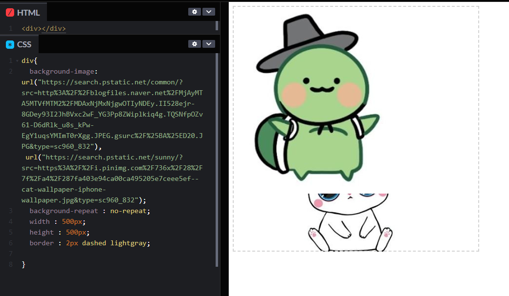 background-image는 먼저 삽입한 url이 먼저 올라오는 특징이 있다.