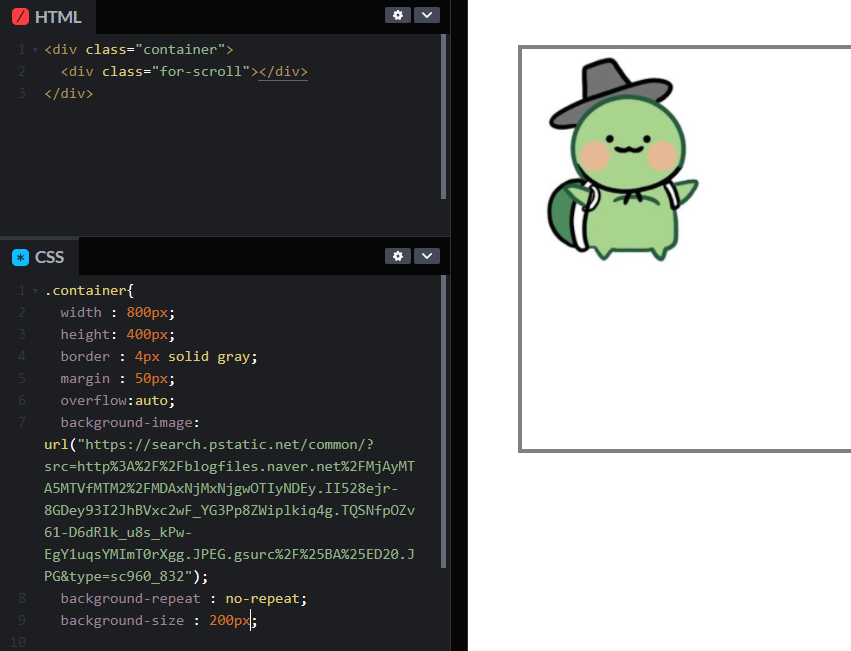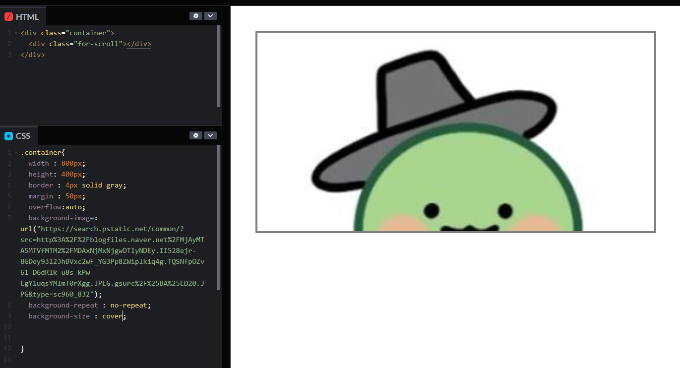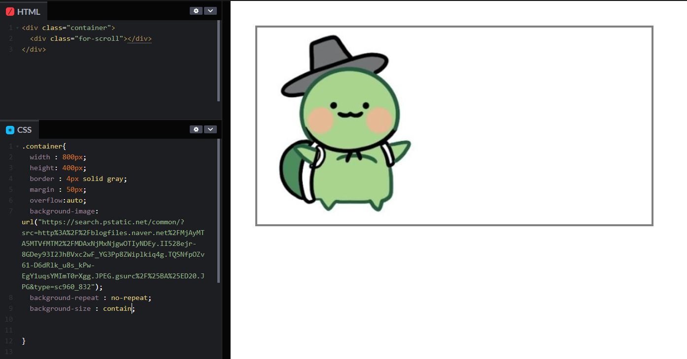 scroll : 배경이미지가 요소를 따라서 같이 스크롤 됨