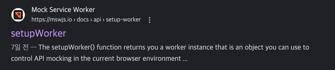 공식문서에서 worker를 사용하는것이 조금 바뀌었다. 우선 msw/brower에서 setupWorker를 호출하게 바뀌었다.